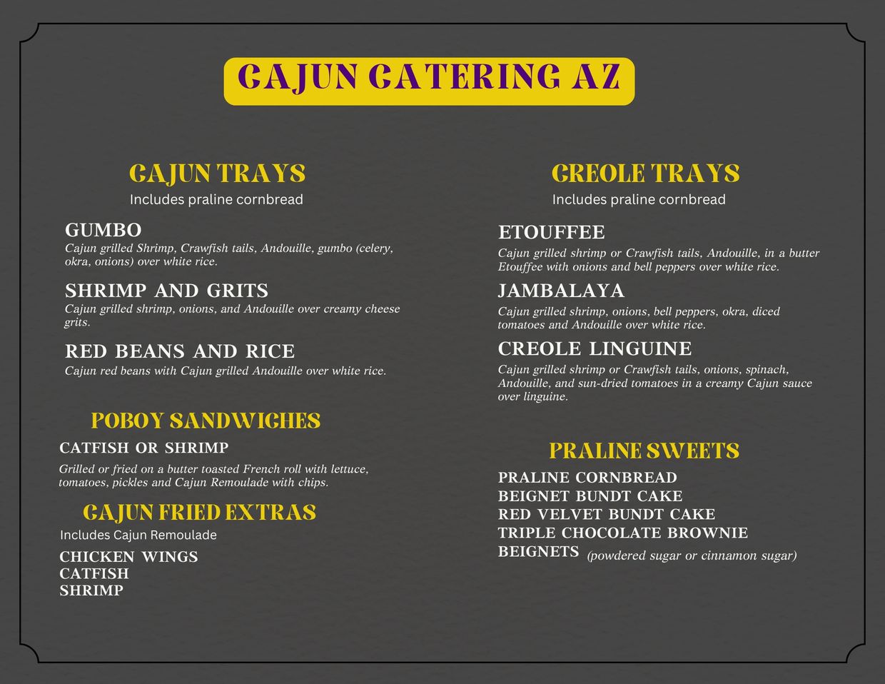 Whether you are hosting a Mardi Gras event at home or work or want to impress your friends and family with some Cajun Fried Wings for March Madness, let us provide catering for you.